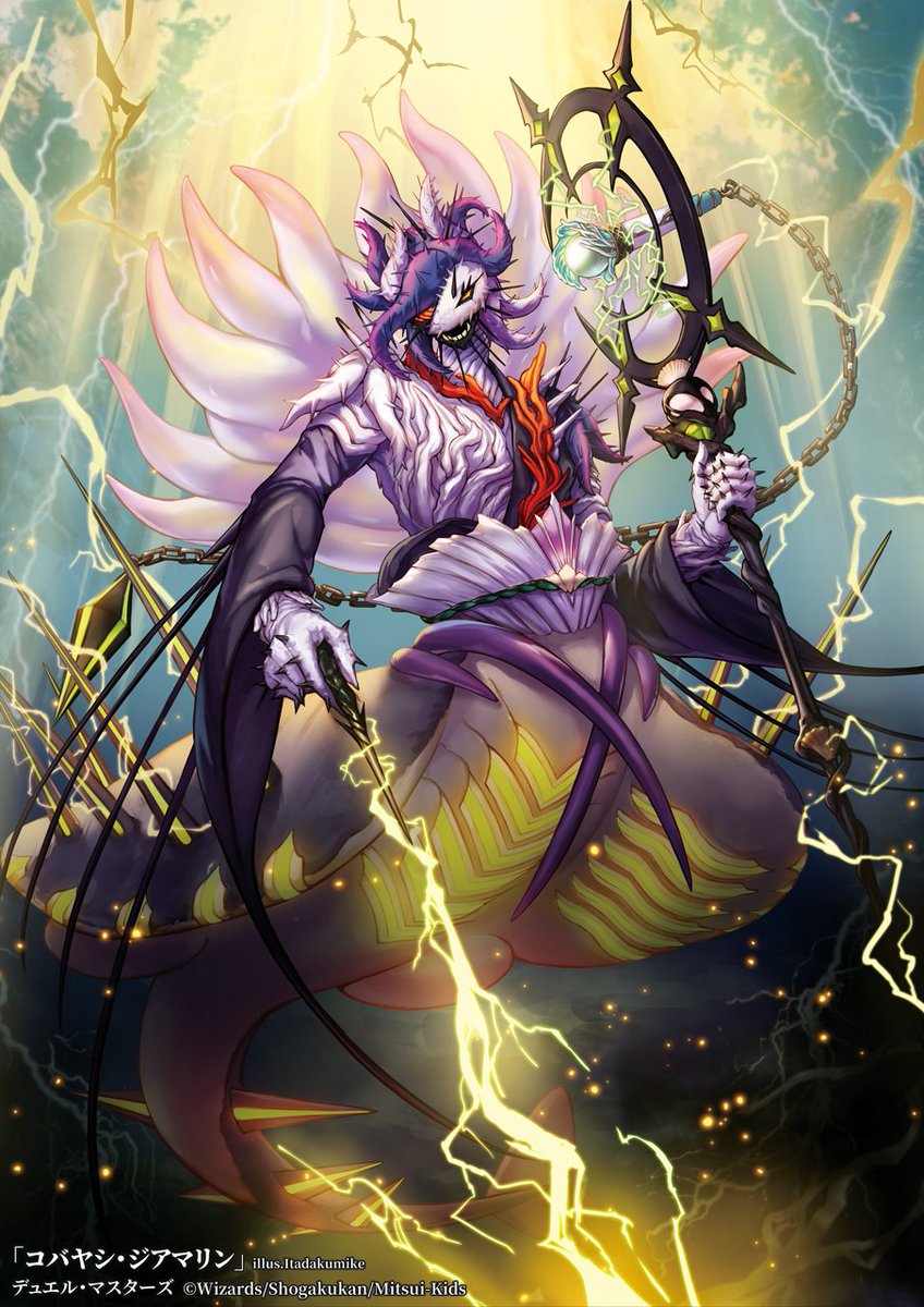 【お仕事】12月17日(土)発売 デュエル・マスターズTCG ゴッド・オブ・アビス 第2弾「轟炎の竜皇」🔥 「コバヤシ・ジアマリン」のシークレットレア版とノーマル版の2種担当させていただきました!水文明でハイクを詠もう📱 #デュエマ #デュエル・マスターズ