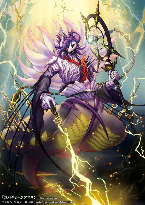 70 175 【お仕事】12月17日(土)発売 デュエル・マスターズTCG ゴッド・オブ・アビス 第2弾「轟炎の竜皇」🔥 「コバヤシ・ジアマリン」のシークレットレア版とノーマル版の2種担当させていただきました!水文明でハイクを詠もう📱 #デュエマ #デュエル・マスターズ 22/12/17 13:39