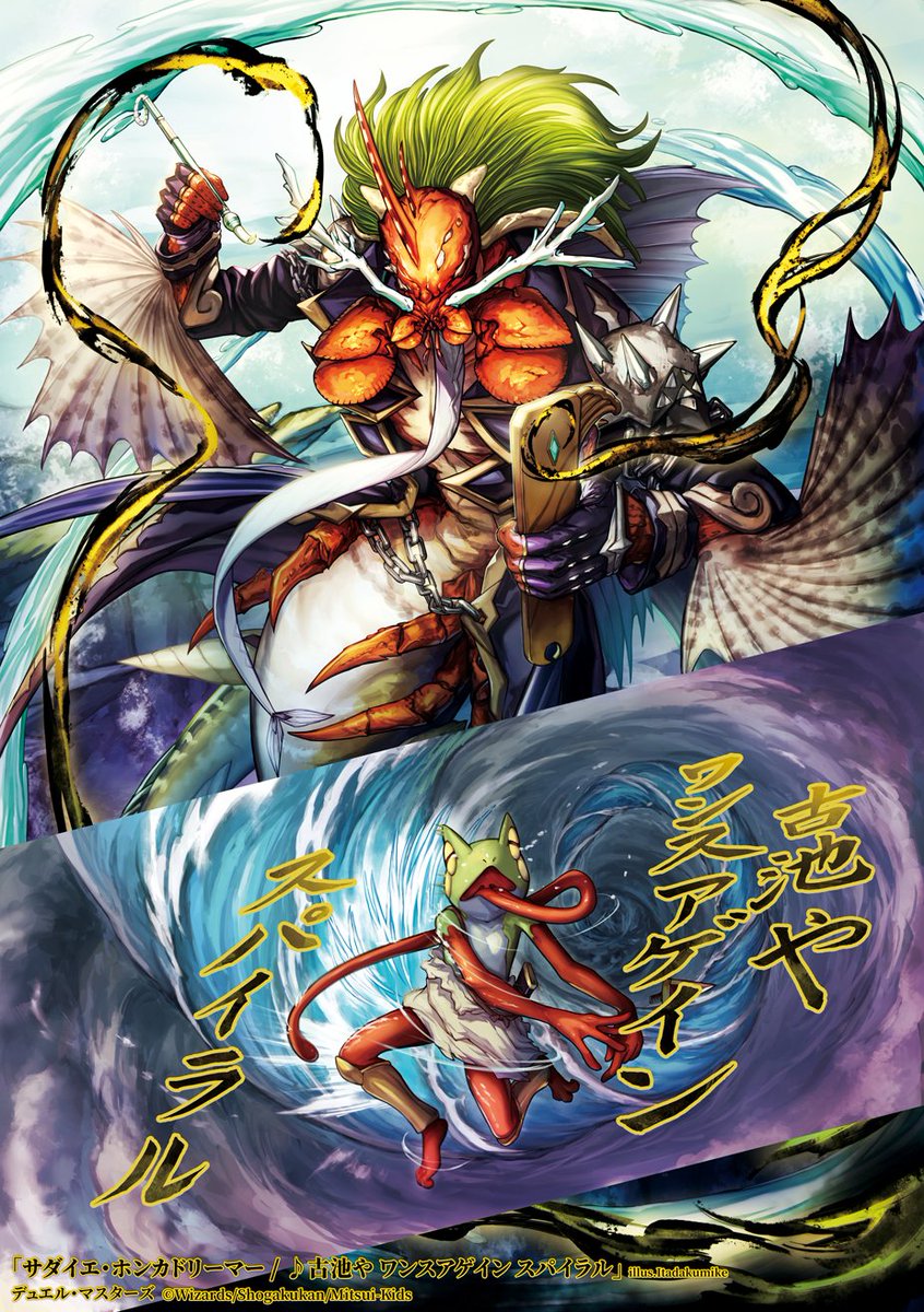 79 164 【お仕事】 サダイエ・ホンカドリーマー / ♪古池や ワンスアゲイン スパイラル 4月22日(土)発売 デュエル・マスターズTCG アビス・レボリューション 第1弾 「双竜戦記」収録です。 #デュエマ #デュエル・マスターズ 23/04/22 14:14