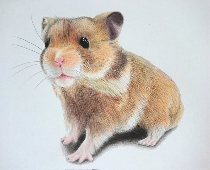 色鉛筆画上達ドリル動物編より モフモフ系第2段‼️ step13 ハムスター 下絵をトレースして描いてみました 鉄筆はヒゲだけで一本一本毛を描きました #色鉛筆画上達ドリル動物編 #ハムスター #色鉛筆画 #色鉛筆イラスト #動物イラスト #GW終わった後で投稿する