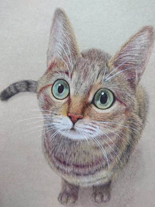 色鉛筆画上達ドリル動物編より step7スコティッシュフォールドを描く を下絵をトレースして描いてみました ひげ以外は鉄筆使わずに描きました 白い毛並みは難しいですね😰 #色鉛筆画上達ドリル動物編 #イロドリアル #スコティッシュフォールド #ねこ #色鉛筆イラスト