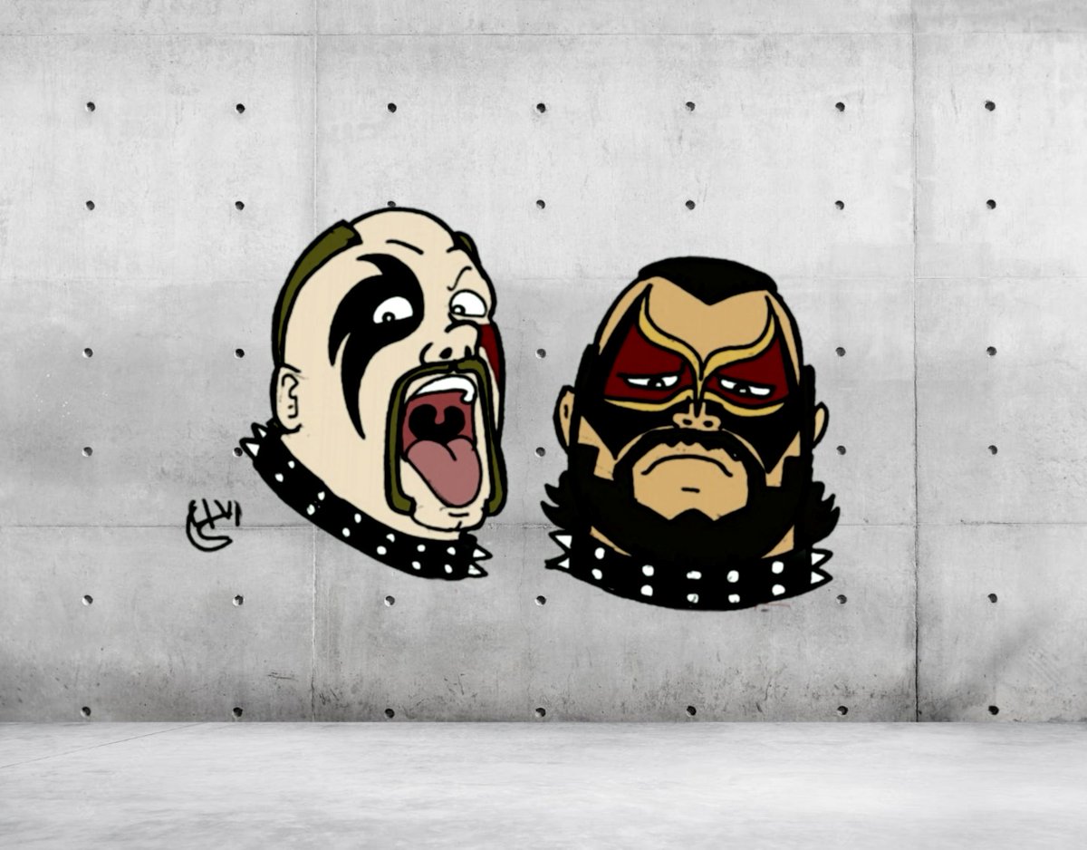 ロードウォリアーズ🎶前にも似たようなイラスト描いてますが🤣新作~ 新作感出すため壁の落書き風にしました スラム街っぽくていー感じかもv(o´ з`o)♪ スラム街出身でネズミを食べてたって本当に信じてたいとじ少年でした🤣 #ロードウォリアーズ #プロレスイラスト