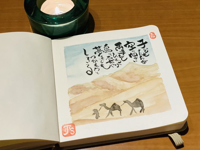 The sketchbook for watercolor painting with Onoresho [己書] The stranger on the desert. #watercolorpainting #artwork #みんなで楽しむTwitter展覧会 #春の創作クラスターフォロー祭 You can watch making video on YouTube. 👇Don’t forget to check ekaki J’s YouTube channel!!👇