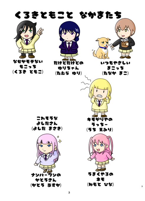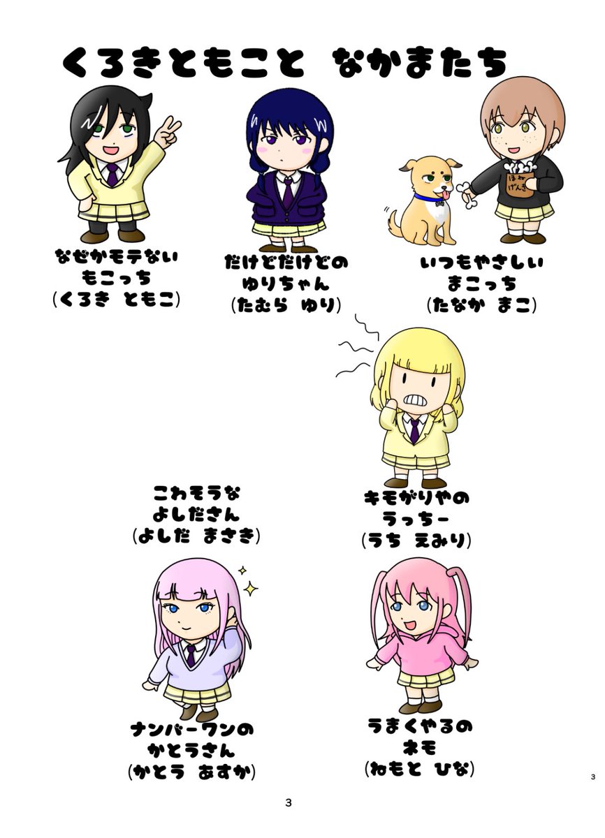 24 51 (続き) 中扉と裏表紙 「だけどだけどのゆりちゃん」 「キモがりやののうっちー」 「いつもやさしいまこっち」 約1年振りのモテ即サークル参加楽しみ!よろしくお願いします🙇♀️ #モテ即11 #わたモテ #watamote 22/09/17 09:43