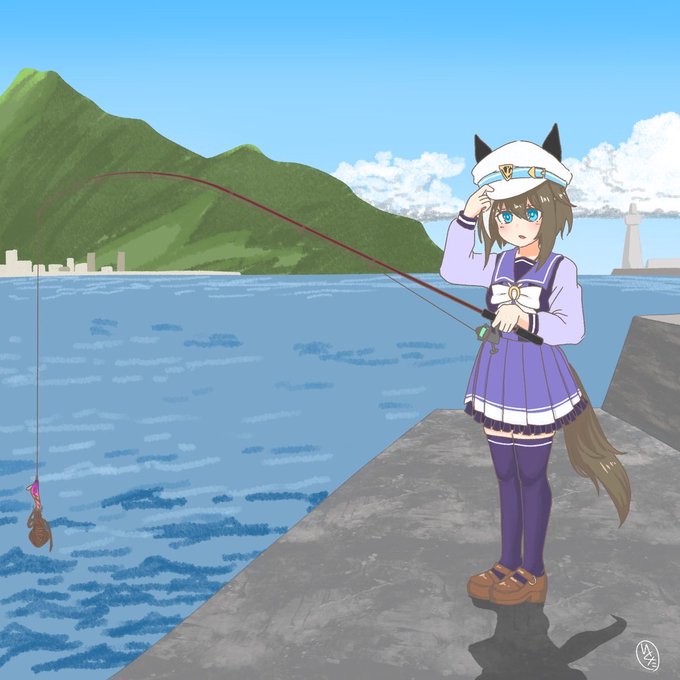 おはようございます 出社前に釣り場についたセイちゃん描きました。 #ウマ娘