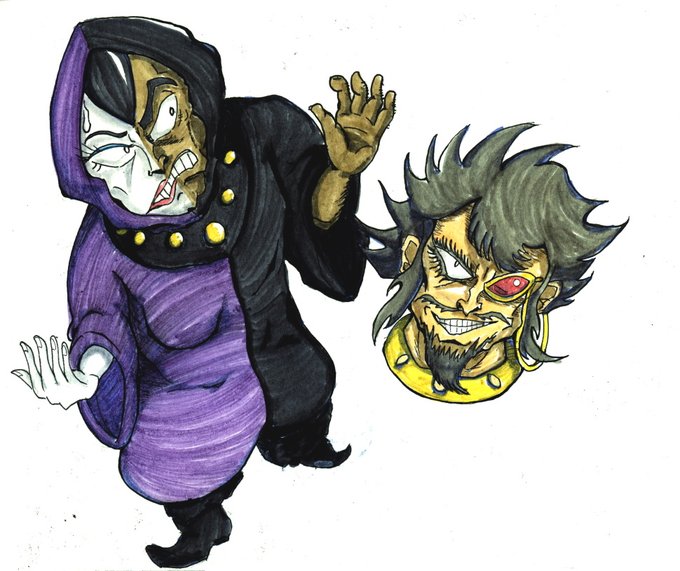 週末落書きその3は「あしゅら男爵&ブロッケン伯爵」。 Drヘル配下の2人(3人か?)大好きなんすよねえ。色や表情は真マジンガー仕様。#マジンガーZ