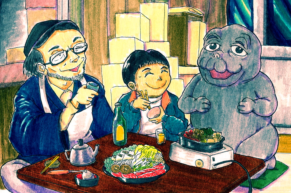 週末落書きその2は「#ゴジラ ・ミニラ・ガバラ オール怪獣大進撃」。作中ミニラは中央の一郎少年のイマジナリーフレンドですが野暮を承知で顕現させてみました。画面左は鍵っ子の一郎くんの面倒を見てくれるお隣の南さん、天本英世さんの好演がシブいす…!