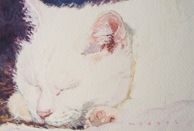5 63 ねむねむ・・・。 (=-ェ-=) zzz #art #artwork #painting #アート #美術 #絵画 #絵 #水彩画 #cat #猫 #ねこ 22/02/04 10:18