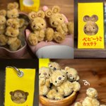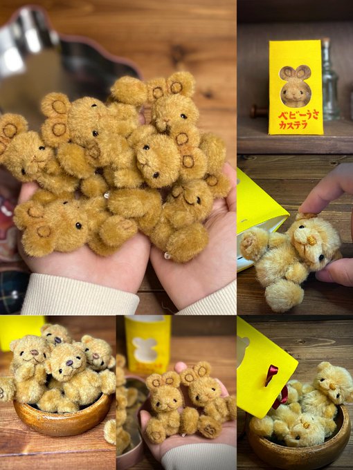#デザフェス57目玉商品 いとわたあめの目玉商品は、 テディベア作家が作る【ベビーカステラ】です✨ 小さいですが、手、足、首がきちんと稼働するテディベア作品です🧸 袋に入れれば鞄につけて一緒にお出かけもできます🎶 一体一体、お顔や焼き色がちがうので実物を見にいらしてください〜🫧 twitter.com/itowataame/sta…