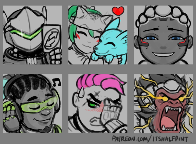 Sketches for November's Patreon - finished emotes should drop within the next few days! Sign up now to avoid missing them at the $10 price! #Overwatch2 #twitchemotes #twitch #Overwatch #OverwatchFanart