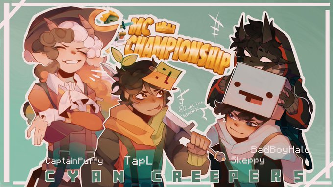 CYAN CREEPERS JOIN THE FIGHT! #CaptainPuffyfanart #taplfanart #badboyhalofanart #skeppyfanart #mccfanart #MCChampionship #mccthumbnail