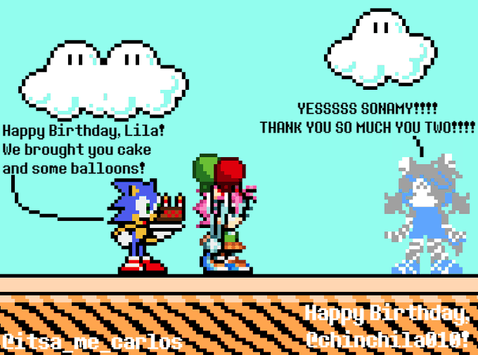 Hey y'all, so since you guys liked my Sonamy Boll art I made a few months ago, here's more that I actually made! This time Sonamy (Sonic and Amy) wishing @chinchila010 a happy birthday!! I hope you have a fantastic day, Chinchi!! #sonicartist #sonicoc #ArtistOnTwitter