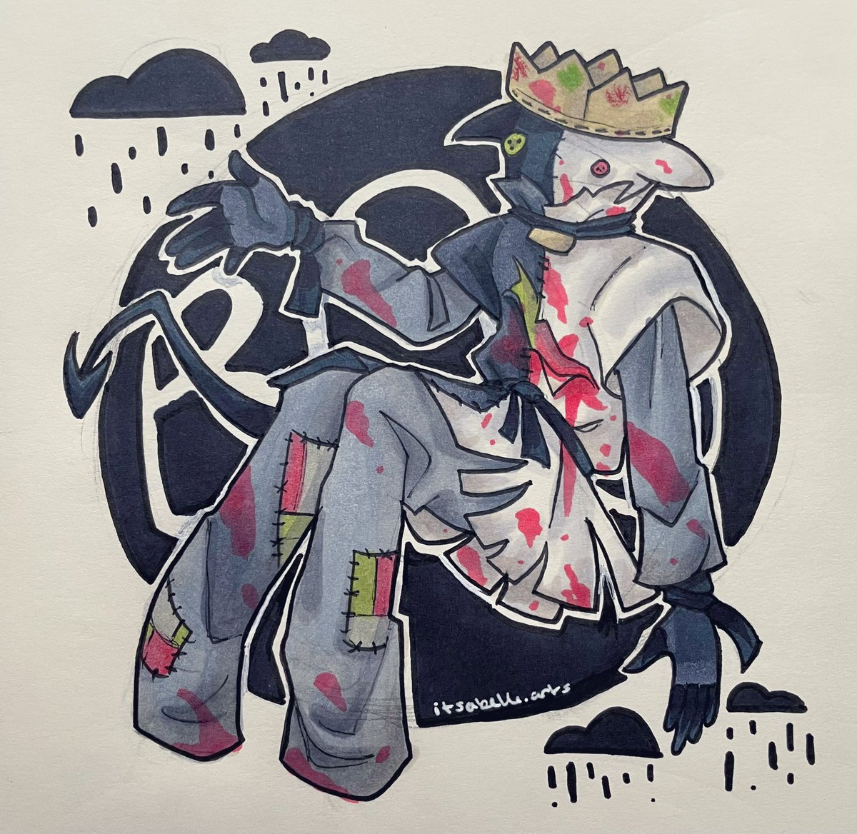 [ cw: blood ] ghostboo design !!!! i’m actually really proud of this design, i got a lot of inspiration from corn husk dolls and then kinda just went down that path :) [ #dsmp #dsmpfanart #ranboofanart #ghostboofanart ]