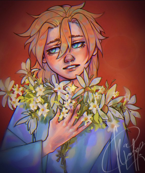 he totally likes receiving flowers,,, the flowerboy🥰 #Albedo #Genshinlmpact #genshinimpactfanart #Genshinfanart #albedofanart