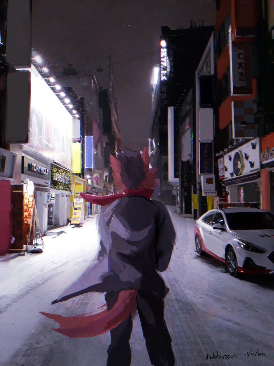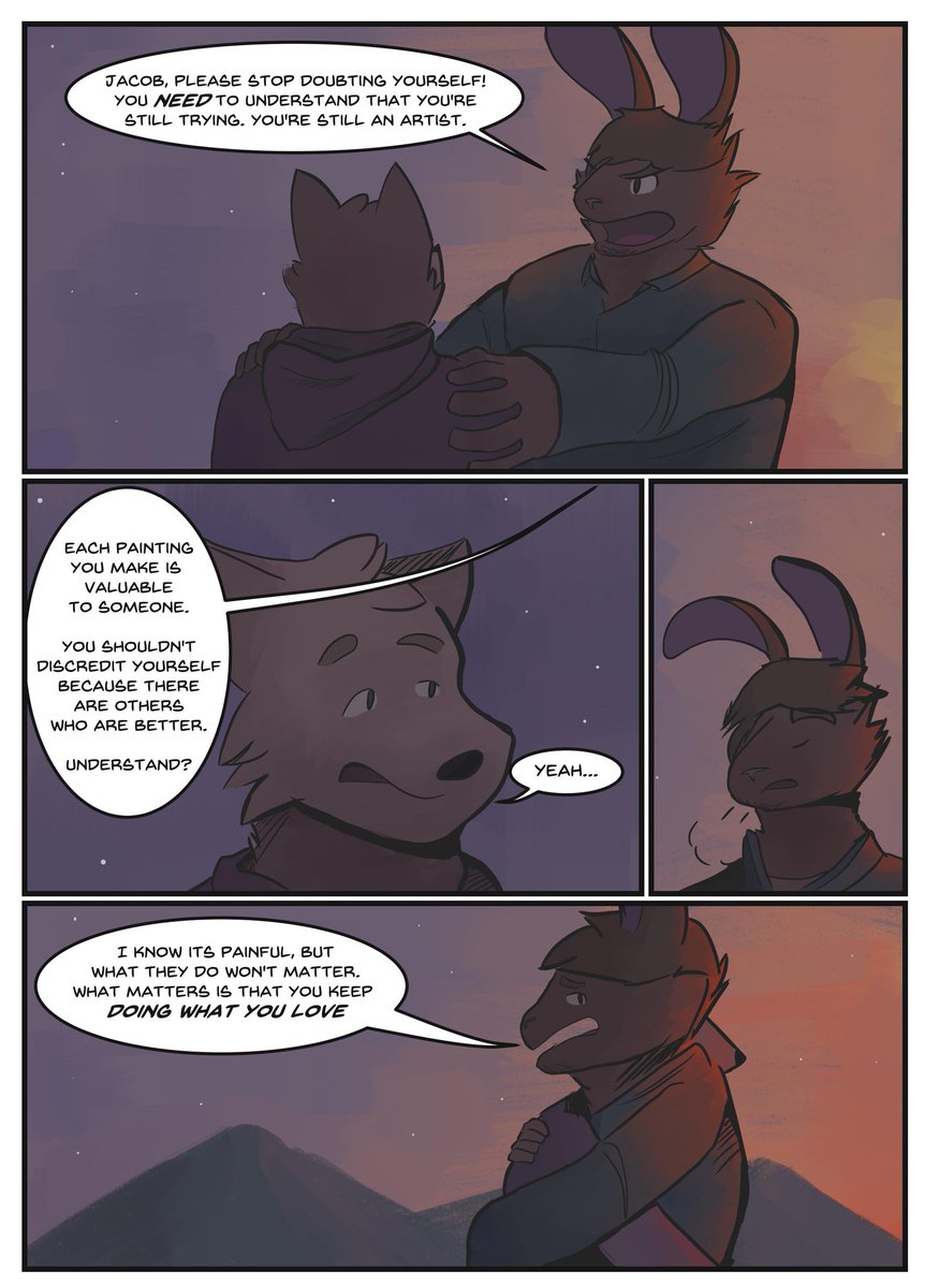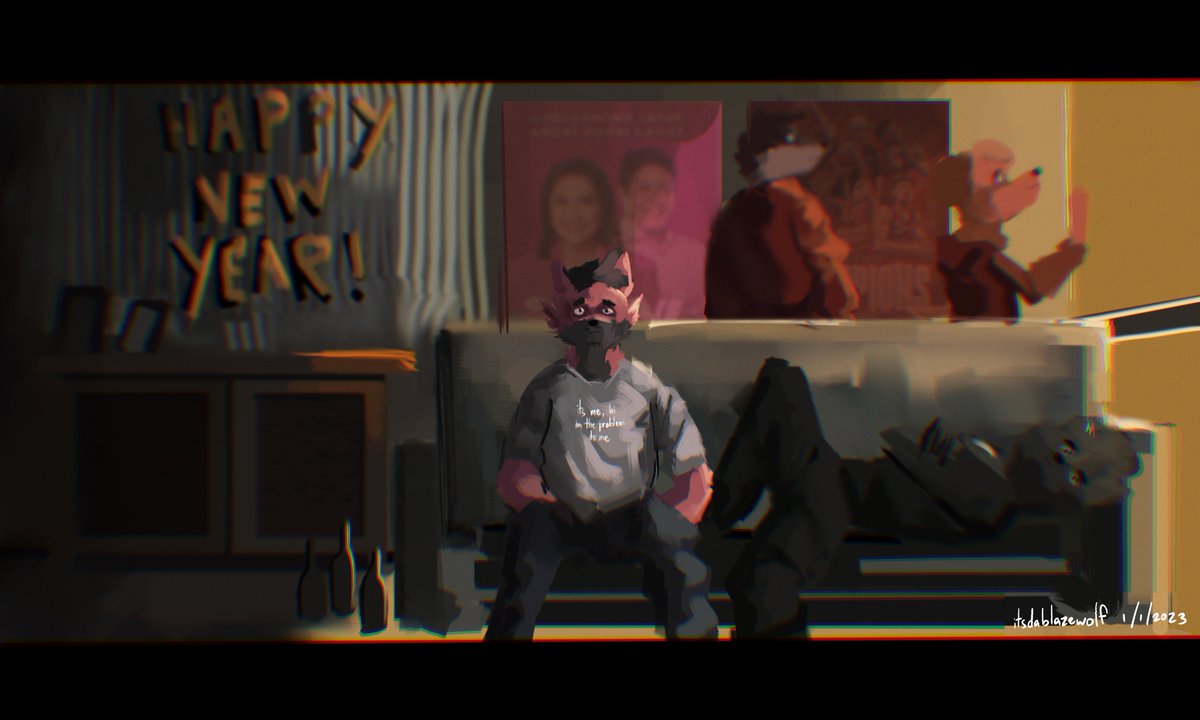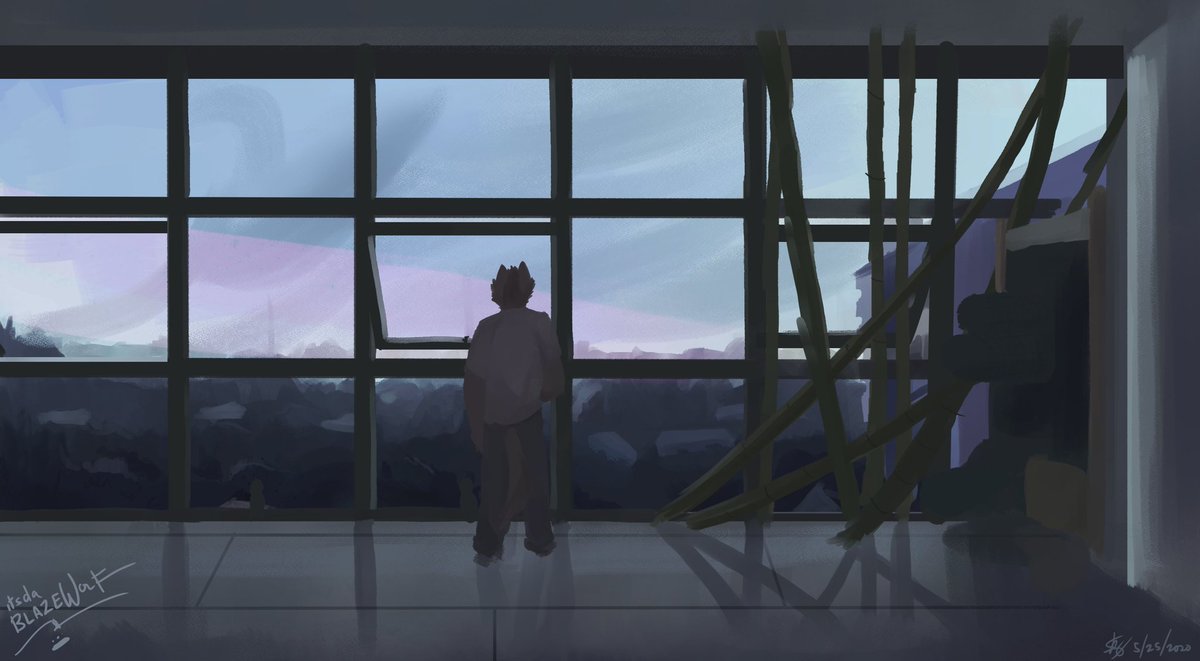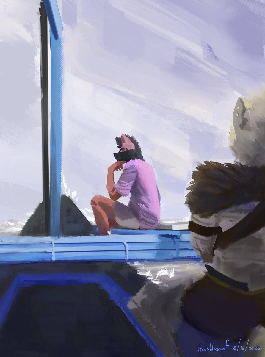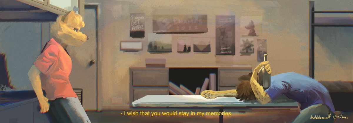 Sup #PortfolioDay !! Im Blaze and I paint backgrounds, sad(?) animal people and also write stories about them, whether its about loneliness in social media or two frienemies stuck together. And my commissions are also open 👀 (2 out of 4 slots left!) ➡️ itsdablazewolf.carrd.co