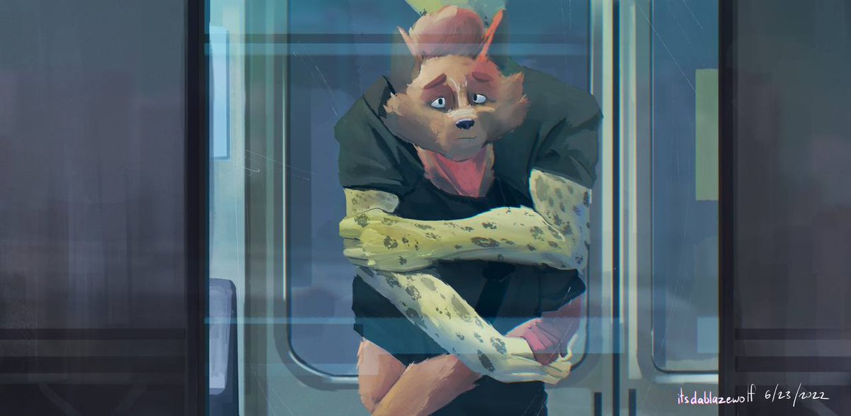 Hi #PortfolioDay! My name is blaze and I like painting melancholic furries to songs and playing with colors! Btw my commissions are open so go take a look at my pinned if youre interested 👀💦