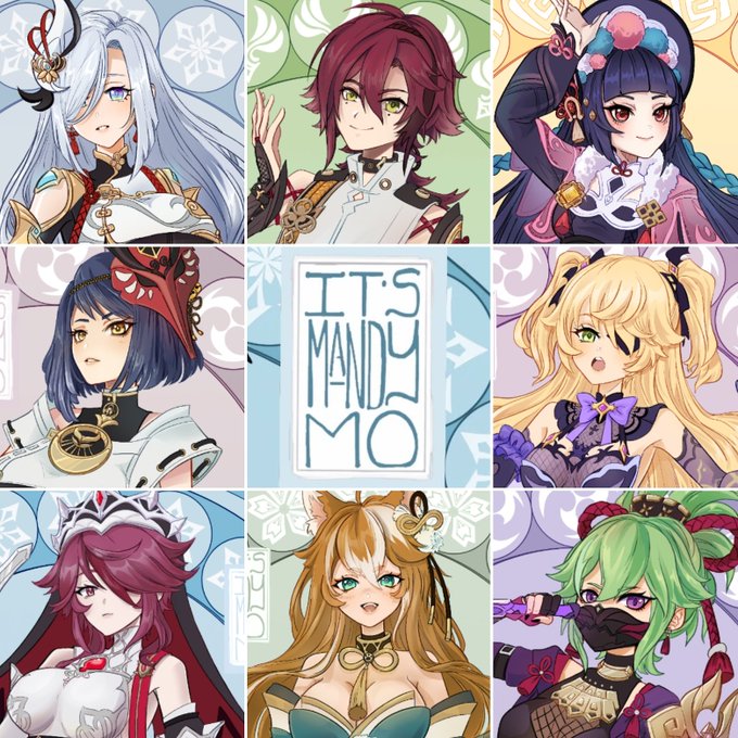 The new ones! Come get these prints at @animeiowa this weekend! #drawing #art #genshin #genshinimpact #anime #shenhe #heizou #yunjin #kujousara #fischl #rosaria #mshina #misshina #kukishinobu #Genshinfanart #genshinimpactfanart