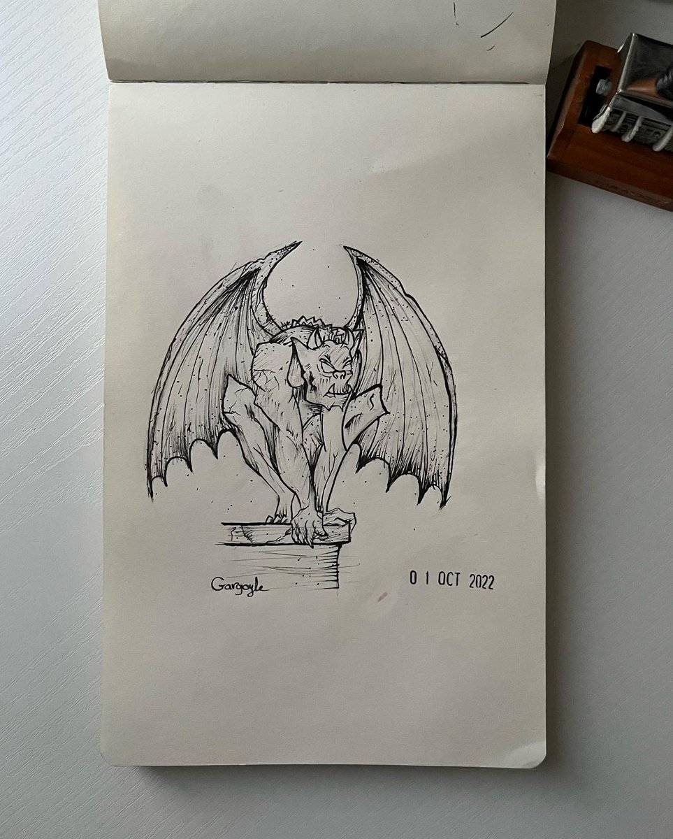 Inktober, Day 1: Gargoyle . . . #inktober #inktober2022 #gargoyle #inktobergargoyle #art #inkdrawing #inktoberchallenge #artist #artchallenge #InkToberDay1 #inktober2022gargoyle #inktober2022day1