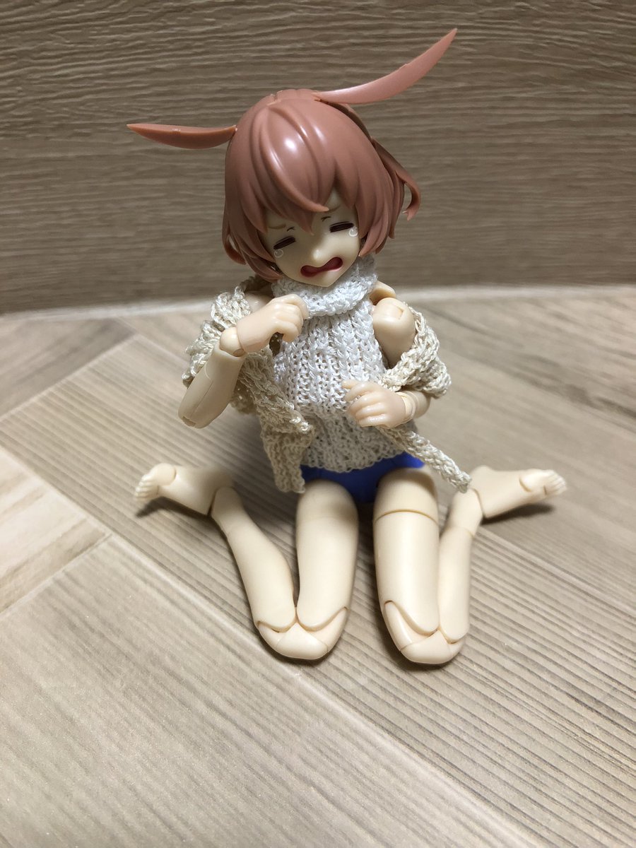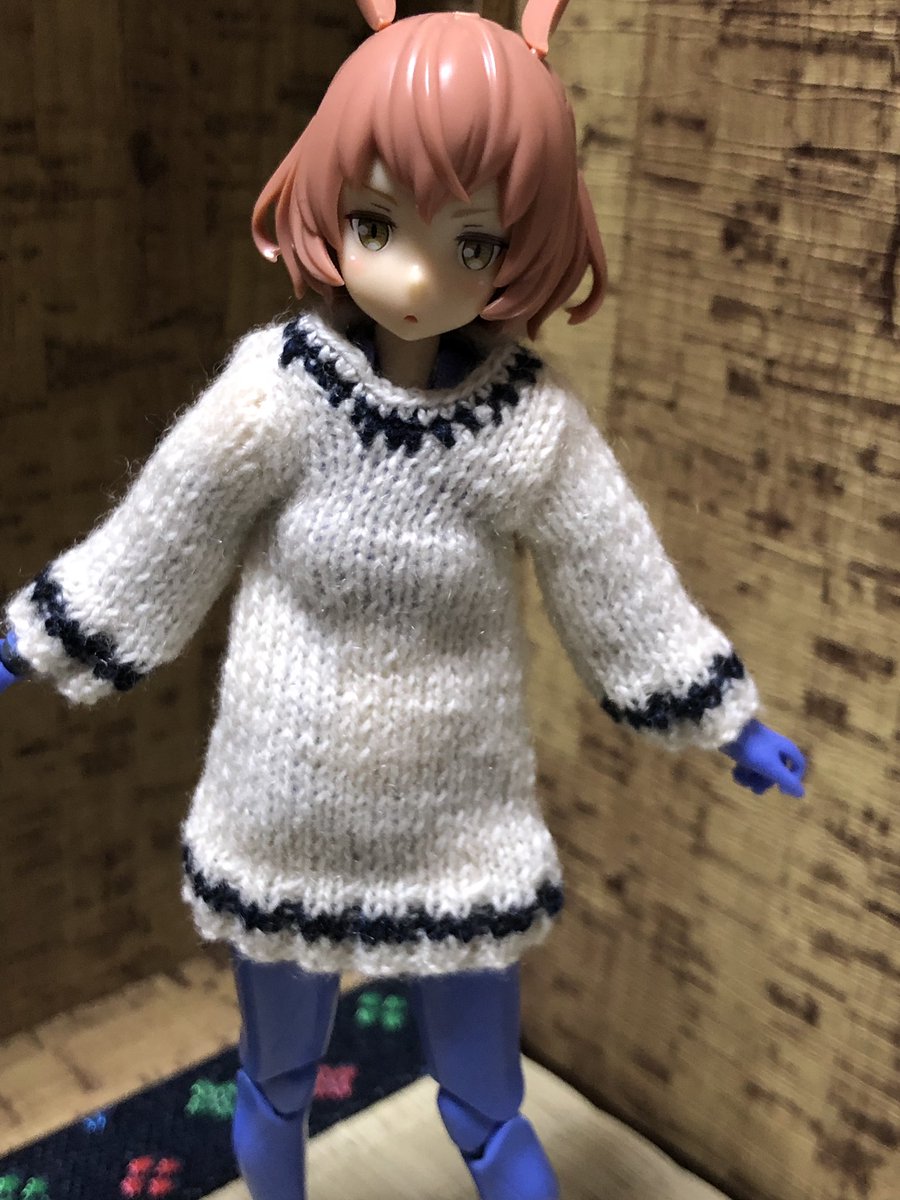 18 58 メガミデバイスサイズのタートルネック編んだ 去年のより丈短めでヘソちら成分が上昇 夏だからこれくらい油断しててもいいよね #メガミデバイス #手編み #ゆきうさ服 22/04/18 20:32