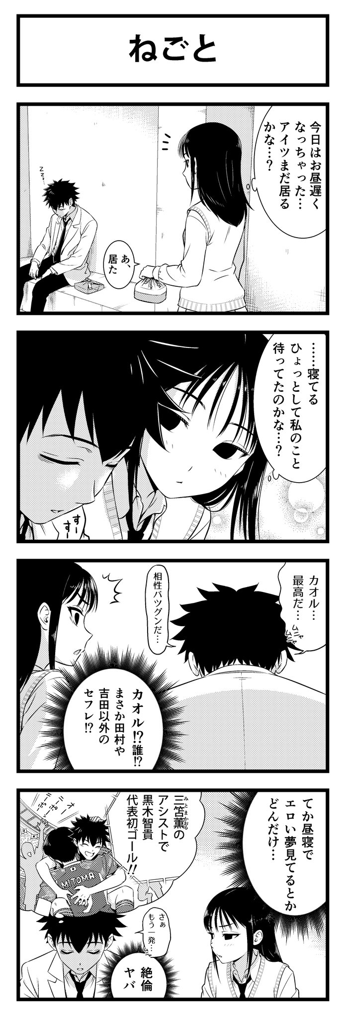 わたモテ4コマ漫画です。 サチの智貴に対する勘違いはいつまで続くのやら。 #わたモテ