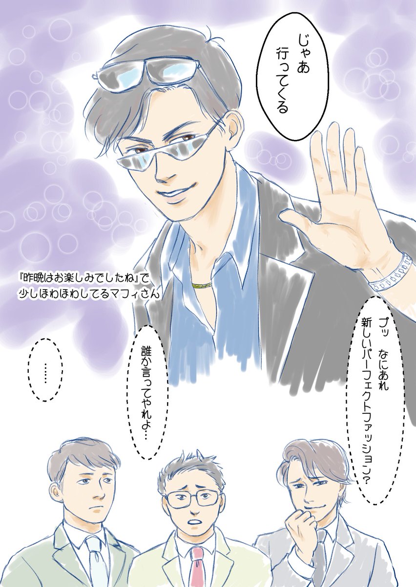 自分でも描いちゃった😉 マフィさんと部下さんたちの落書きです twitter.com/itsuki_matsu24…