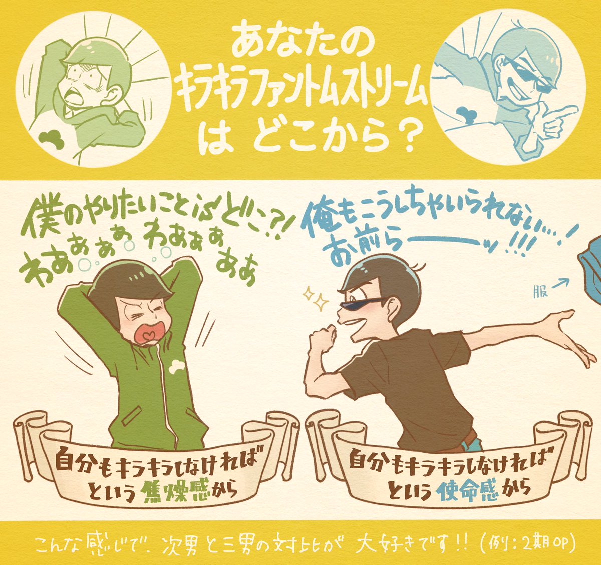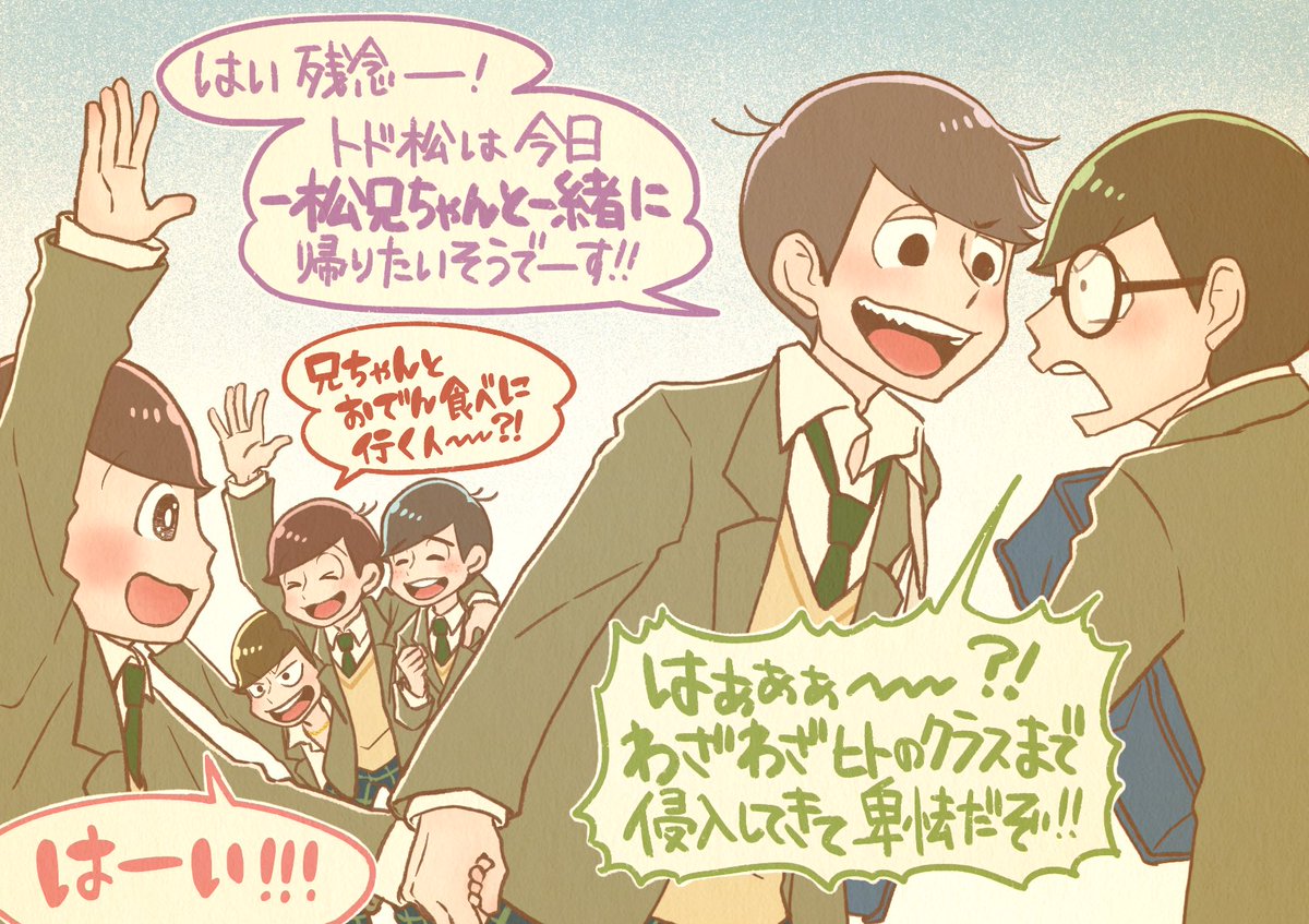 一松くんに手を引かれて歩く トド松くんがかわいかったね 松野くんの高校時代については たとえどんな風にイマジろうと イマジる本人たちの自由である という勇気を得たイマジナリー