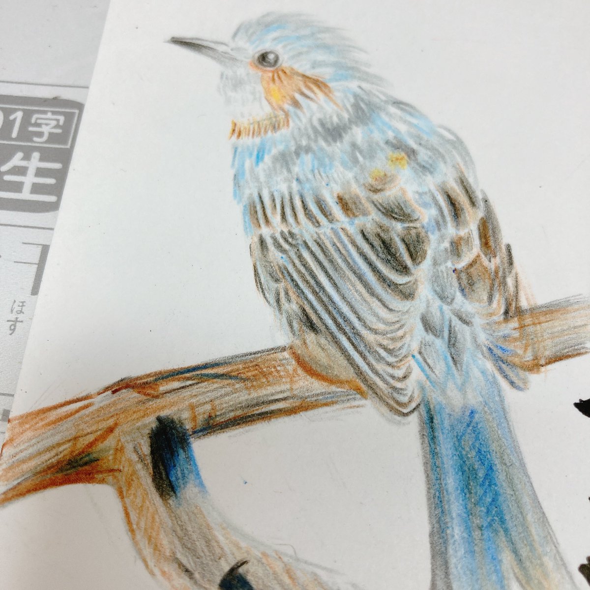1 6 ヒヨドリ。 #色鉛筆 #色鉛筆画 #動物イラスト #アナログ絵 23/05/14 15:38