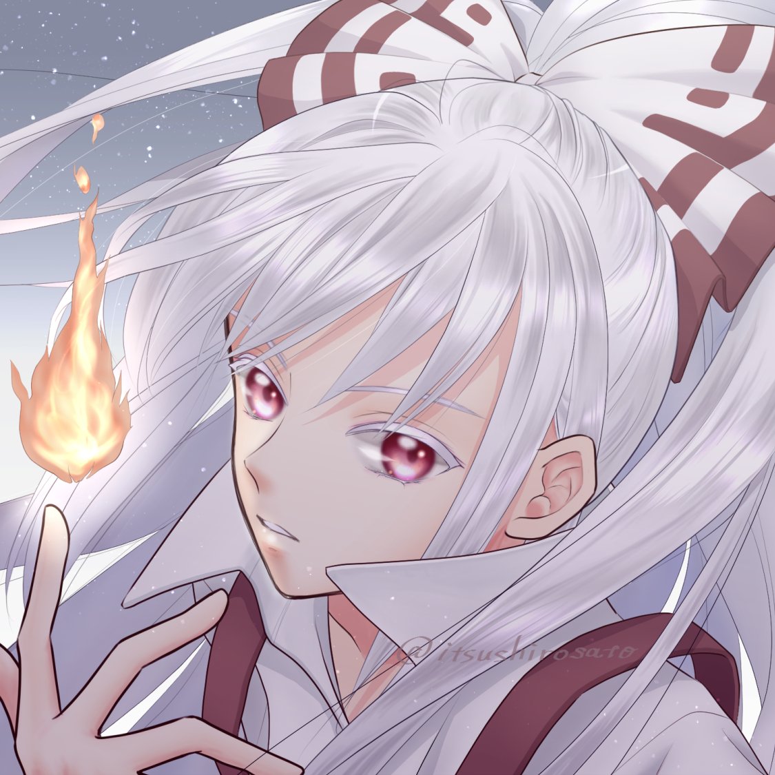 天さま@Pictionalkey主催 #12ヶ月の小品集2022 12月お題「白」。もこたん!🔥 目の様子見してたらギリギリになってしまった😂 #もこたん #東方Project #妹紅 #イラスト好きな人と繋がりたい