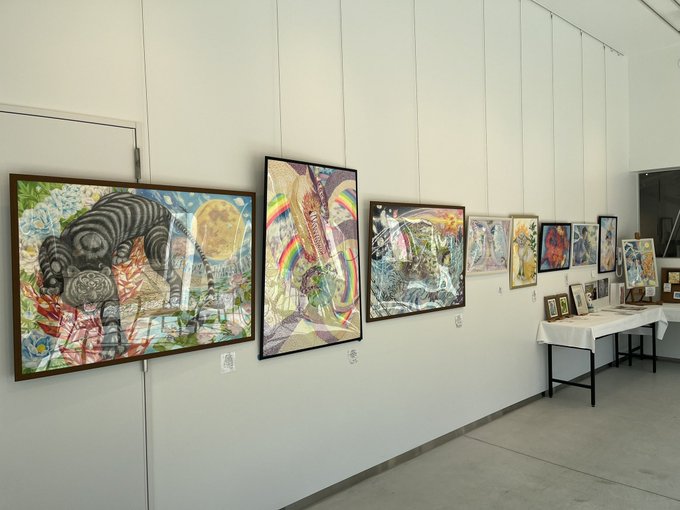 本日、もうひとつの目的! 金蛇水神社境内ギャラリーにて開催中の邦助さんの個展『水明の里』にお邪魔させて頂きました✨ とても素敵で鮮やかな色鉛筆の世界を堪能させて頂きました🥰 いろいろお話しさせて頂きありがとうございました🙇🏻♂️ @kanahebi_shrine #邦助 #個展 #水明の里 #色鉛筆アート
