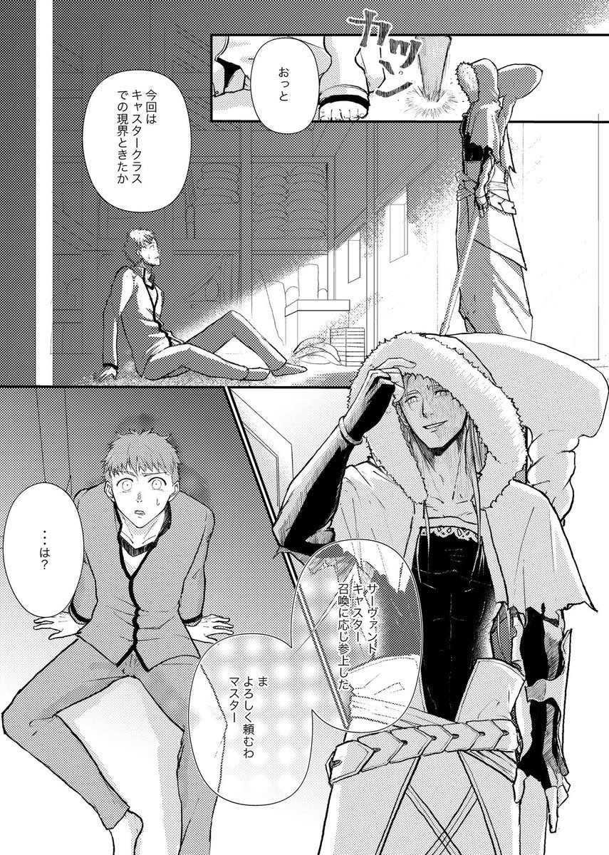 52 157 尻叩きに蒼天4新刊サンプル カルデア時空でお互いほんのり気になっているくらいの距離感で弓の様子がおかしくなる話です。微ホラー要素あるので苦手な方はご注意ください。B5/30p予定 詳細は後日ツリーに続けます #蒼天赤を穿つ4 23/05/25 01:41