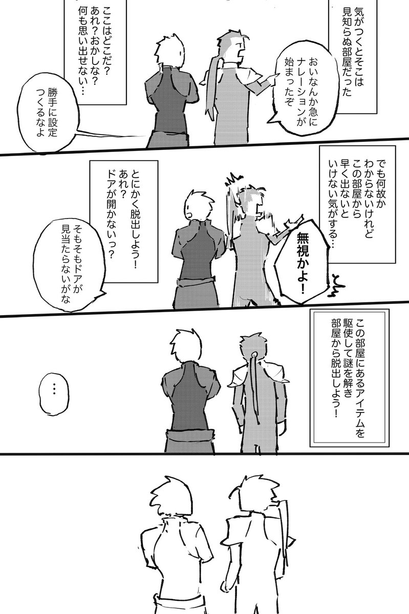 47 177 8月21日新刊サンプル① 脱稿はまだですがけつたたきに・・・ 槍と弓が部屋から脱出しようとする話 22/08/17 05:38