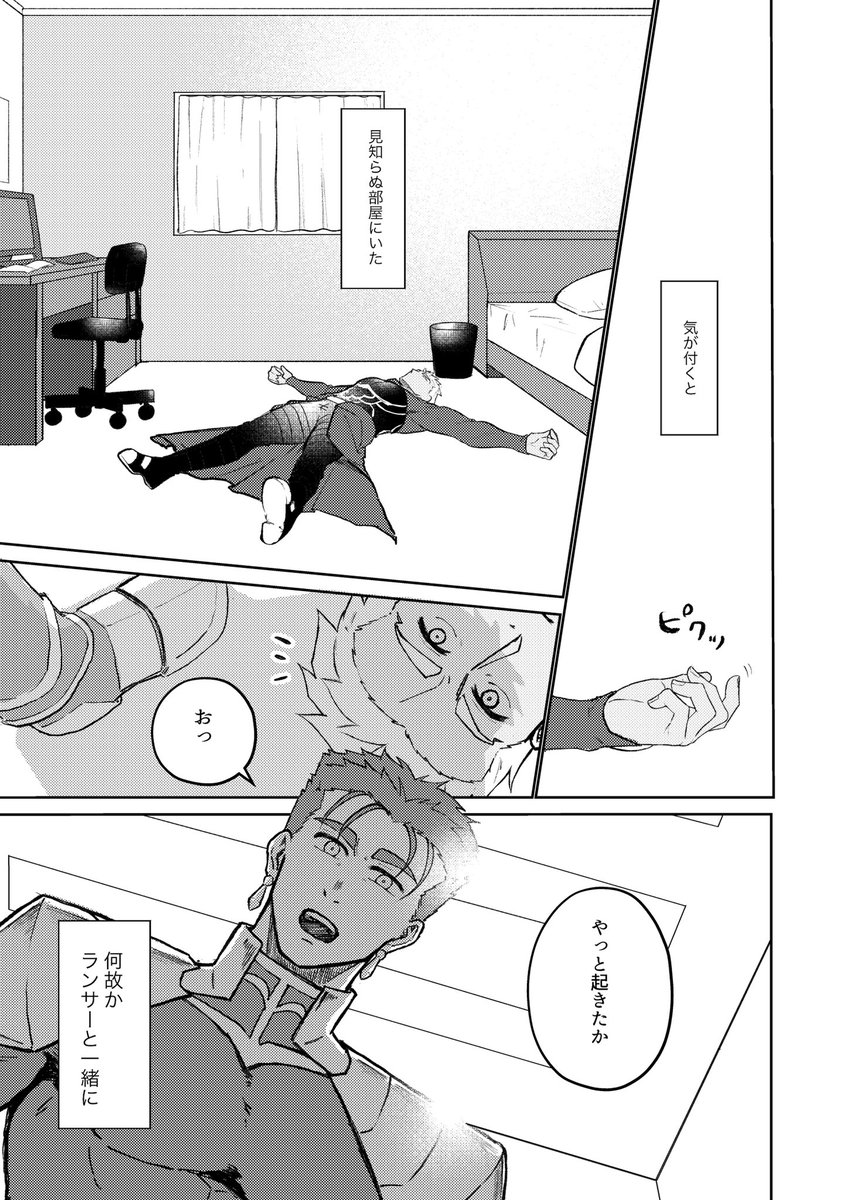 尻叩きに蒼天4新刊サンプル カルデア時空でお互いほんのり気になっているくらいの距離感で弓の様子がおかしくなる話です。微ホラー要素あるので苦手な方はご注意ください。B5/30p予定 詳細は後日ツリーに続けます #蒼天赤を穿つ4