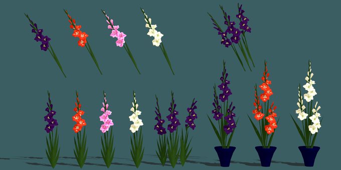 グラジオラス 配布しました。 配布先:bowlroll.net/file/258968 グラジオラスの花言葉「密会」「用心」 ピンクのグラジオラス「ひたむきな愛」 紫「情熱的な恋」 白「密会」 赤「用心深い」