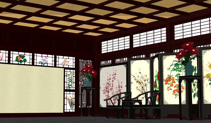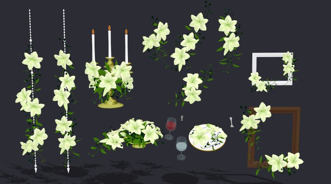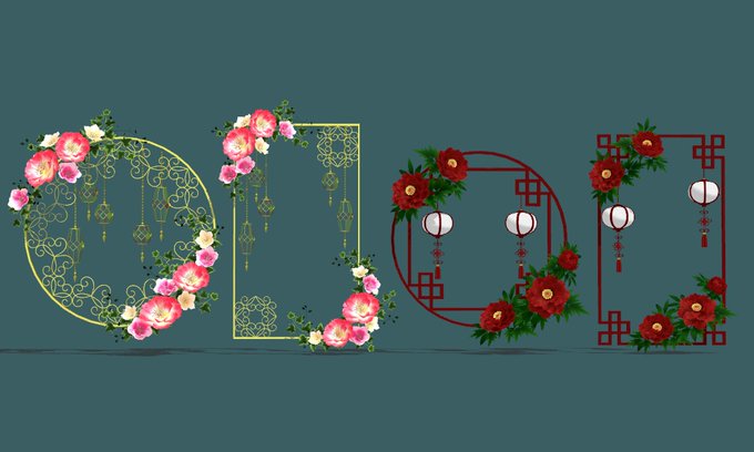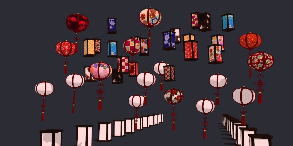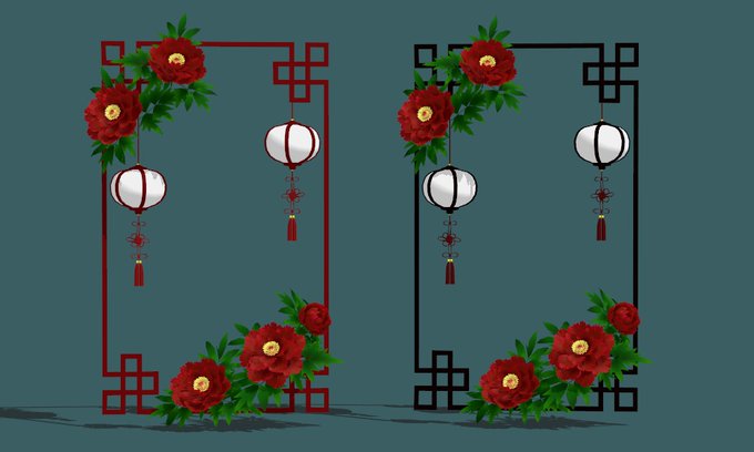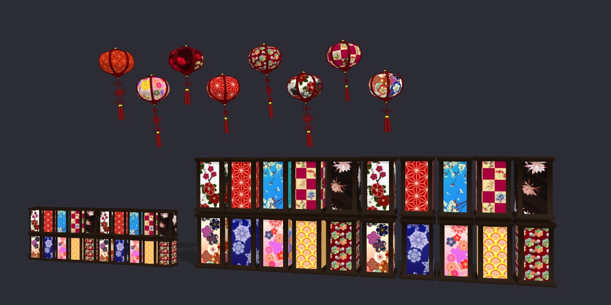 あかりと枠と花 配布先 bowlroll.net/file/242976 モーフで枠の大きさや色が変わります。ランプなどが消えます。花や枠にボーンが入っています。 ランプや提灯に物理が入っていますが、揺れ方は単純です。
