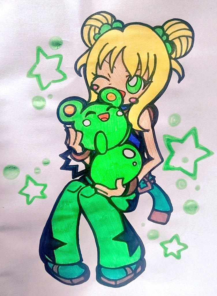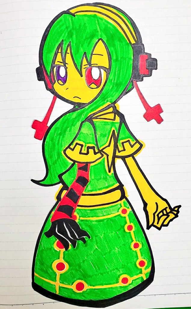 なにが描きたかったのかわからないが、とにかく描いてみた!!!! 人間型ロボットみたいな!? かなりハデハデーっ☆ でも、かわいく描けたぜっっ!! #イラスト好きな人と繋がりたい #オリジナルイラスト