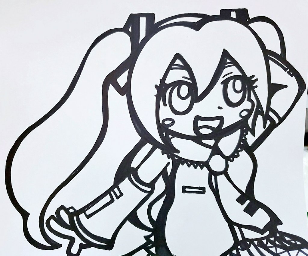 マーカーペンで一発描きしてた。 難しすぎ!! 初音のミクさん、まつ毛マシマシ☆ たまにねあるんですよ。 色紙みたいな大きな紙に、でかでかとイラストを描きたくなることが(笑) でもバランスが悪すぎて。 むー……( ´-ω-) ってなるのですw #イラスト好きな人と繋がりたい #初音ミク