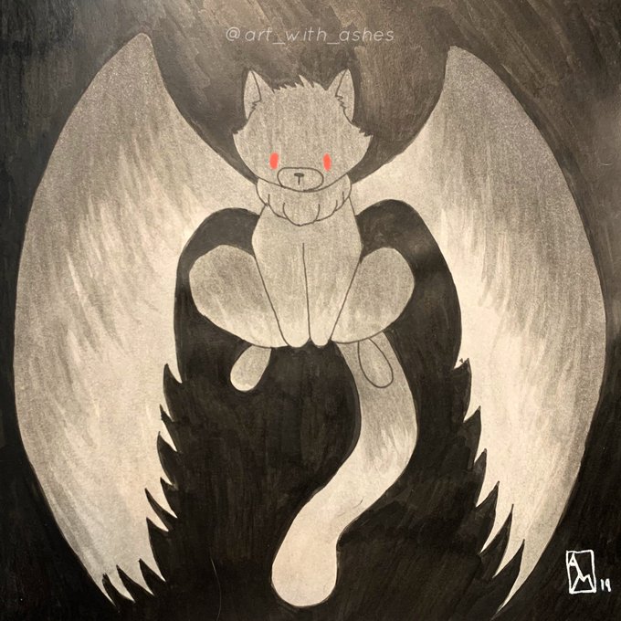 #inktoberday15: Legend. The Mothcat Inspired from watching #Hellier, I decided to create The Mothman as a cat! #inktober #inktoberprompts #inktober2019