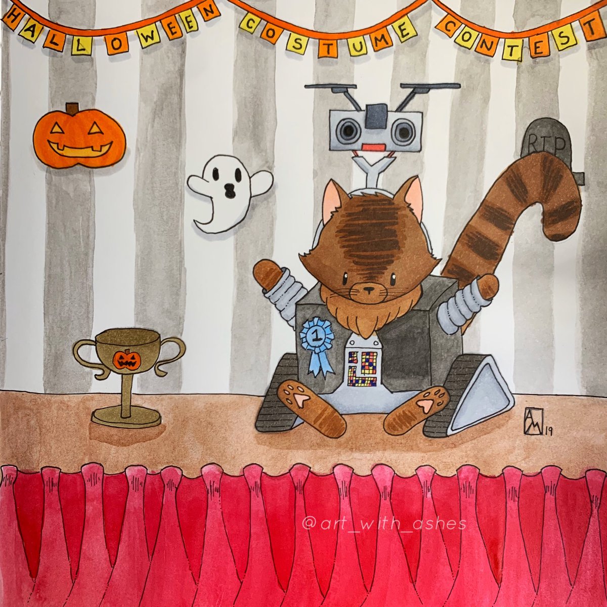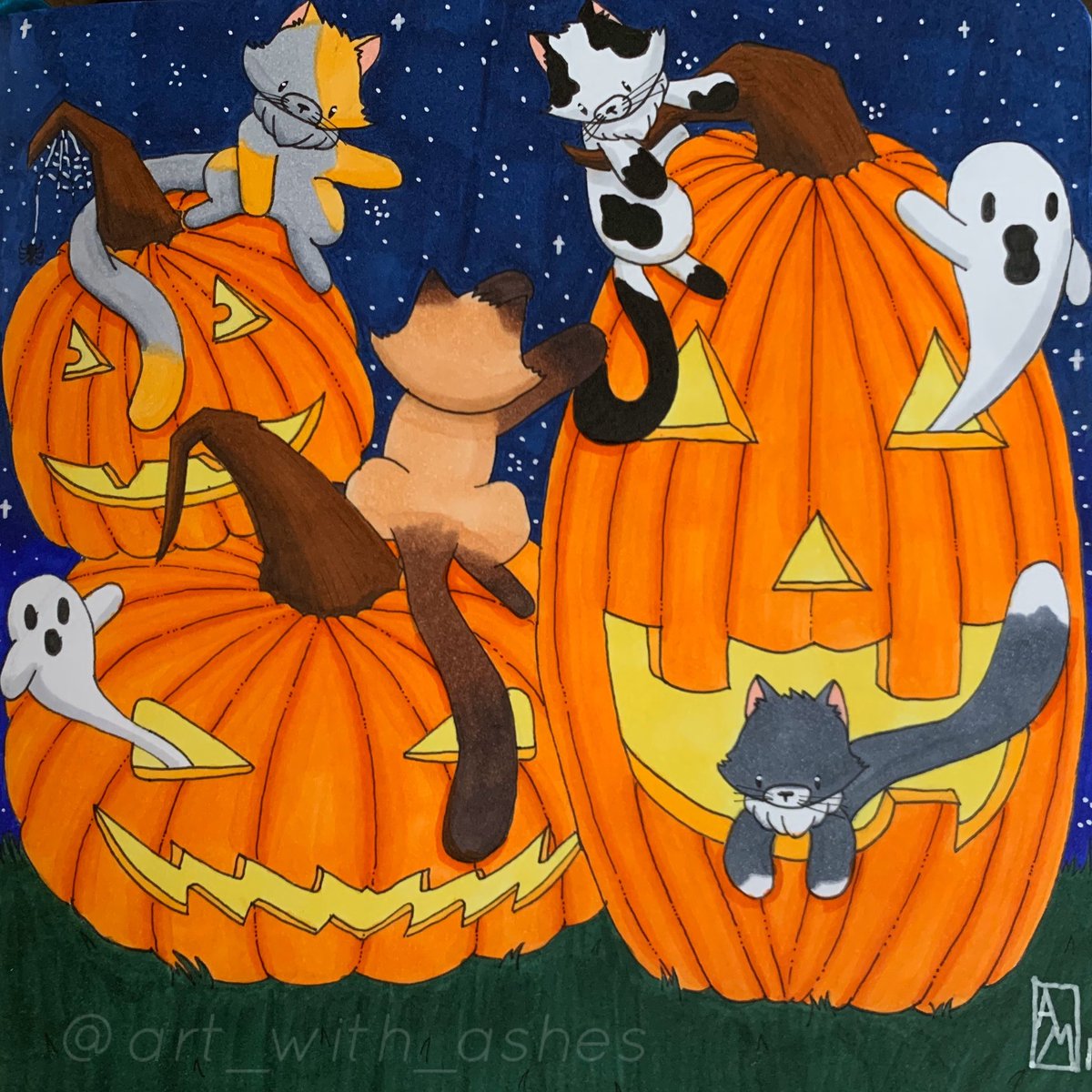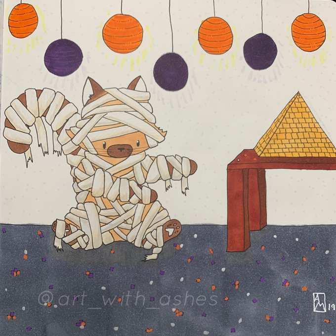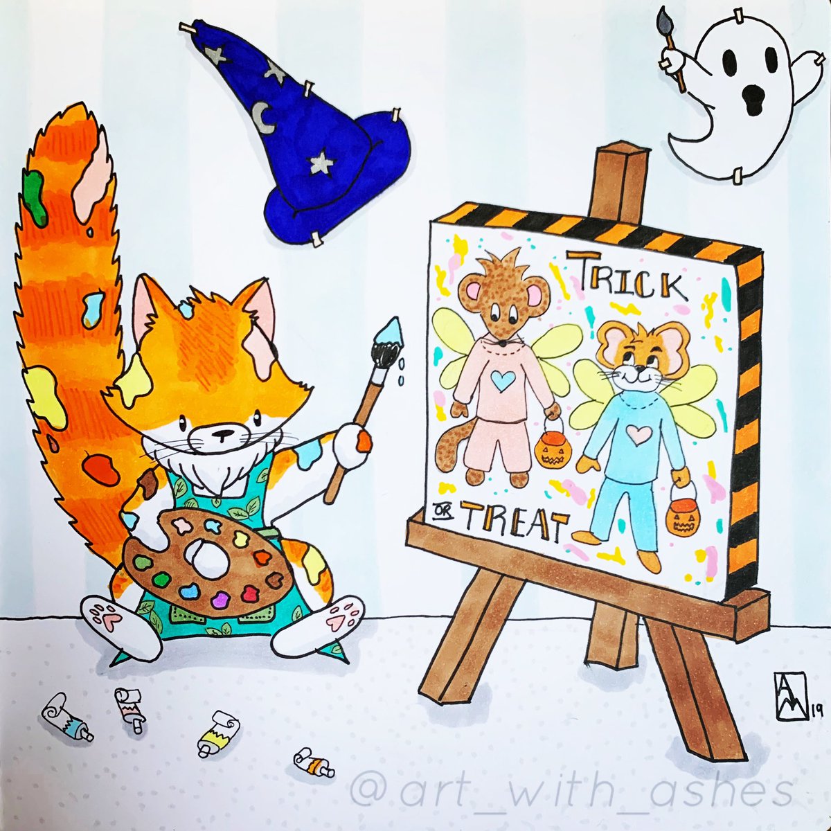 #inktoberday27 - Coat! Pumpkin is a messy painter, but her heart is in the right place! She couldn’t help but make some art for her friends! @mirabyler @ALLJArt @keelz126 @katymvaughan @StarrprincessA 💜 #inktober #inktober2019 #inktoberprompts #artfriends
