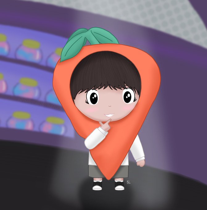 Kookie as a carrot will forever be hilarious and adorable. 💜🐋💜 #ipurpleyou #btsfanart #7YearsWithBTS #7yearswithbangtan #BTSanniversary #BTSARMY #JungkookWeLoveYou #JUNGKOOK #Jungkookfanart #chibi #carrot #4thmuster #7ToEternityWithBTS
