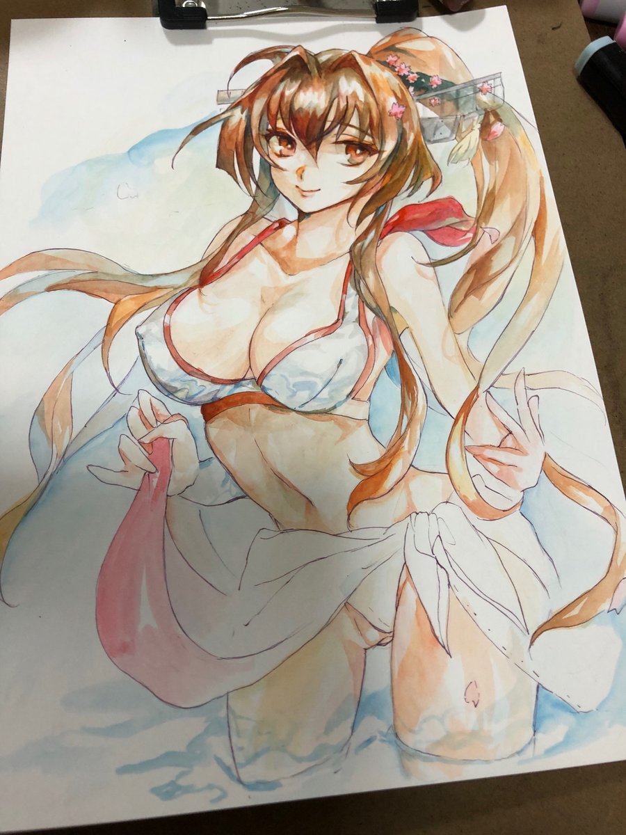 3 4 大和ちゃん リク絵描き中… ちょっと巨乳すぎ? #艦これ #大和 #アナログ絵 #手描きイラスト 22/12/23 21:23