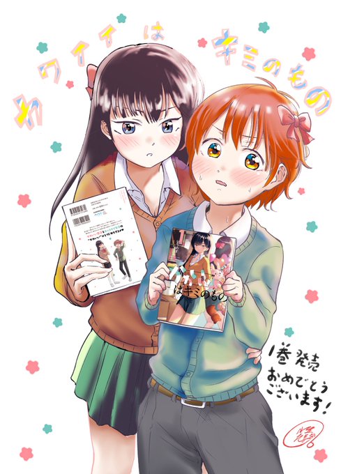 自慢させてください!🙇♂️ おしりんこと小祭さん(@komaturi1 )がかわいいはキミのもの一巻発売のお祝い絵を描いてくださいました!!😭😭😭✨✨ 色合いや表情めちゃくちゃ素敵…密着とてもいいよいいよ…本当にありがとう🤝