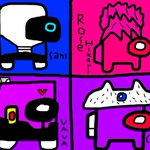 前回Twitterやる前に自分が描いたイラスト4選 東方ドラ助 空条輝 ロゼライト四天王(AMONG US ver.) ロゼライトドット絵(うごメモより) #ロゼライト #ジョジョ #ドラえもん #AmongUS #ドット絵 #うごメモ