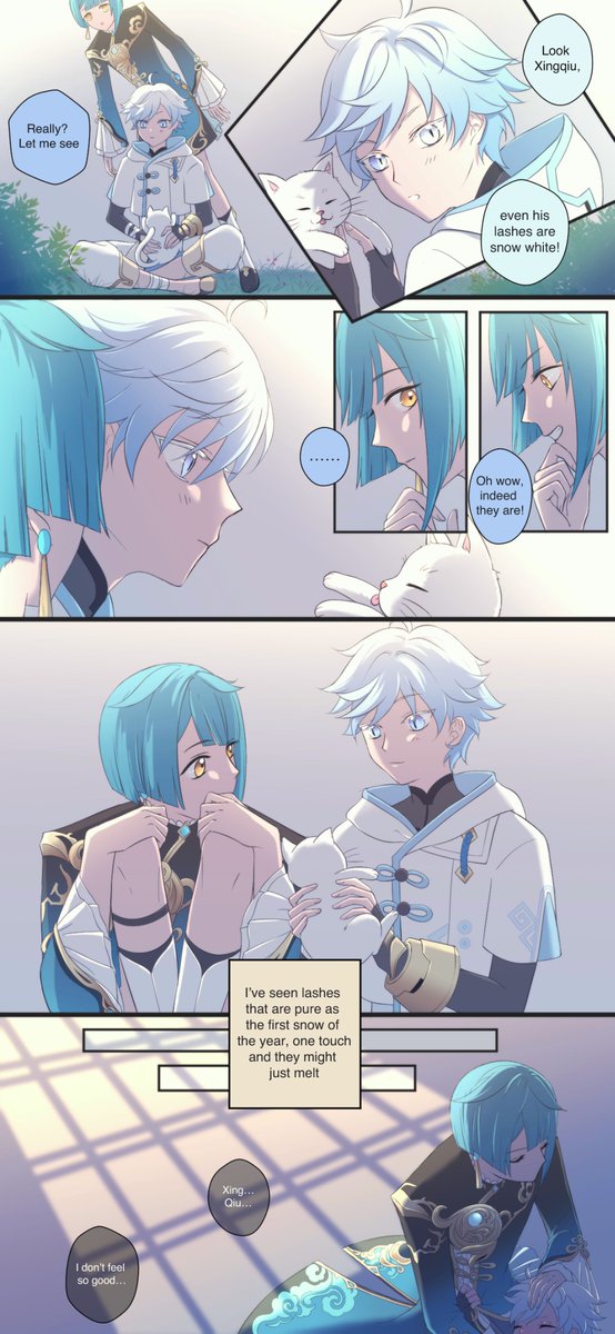 Guys let's not forget the existence of this lil' sprout on the back of chongyun's head xD so precious...I think it would waggle a bit like a tail when he's happy or flustered🥺I just want to water it everyday until it grows into a qingxin flower swaying around on top of cy's head
