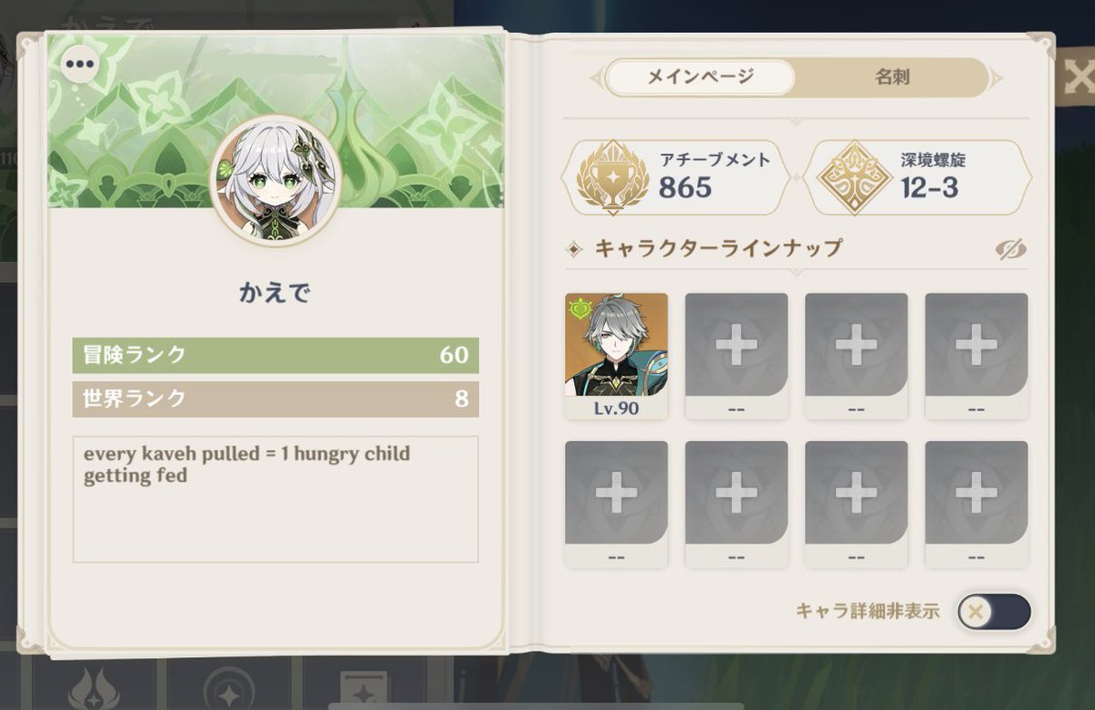 new signature to lure kvh home. meals will be provided to 7 hungry children so pls kvh i need 7 of you to come home🥹🙏 by the end of 3.6 all kvh wanters will be kvh havers & there won’t be a single hungry child left in sumeru😎