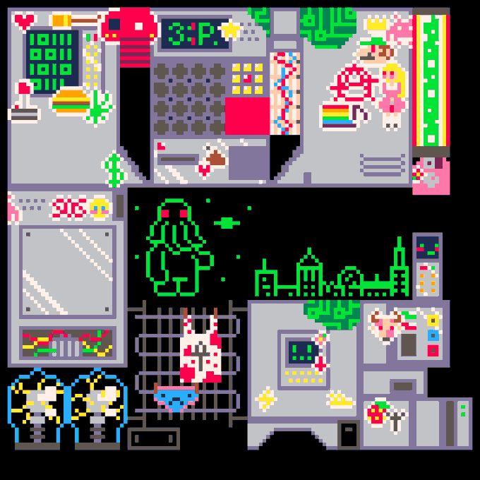 friends sorry for the fake news hehehe!! I said earlier that I was ready for the stickers but I was completely sodomized by picocad these last few hours. now let's go to the stickers fr. no fake news😅#wip #ドット絵 #pixelart #surrealism #digitalartwork