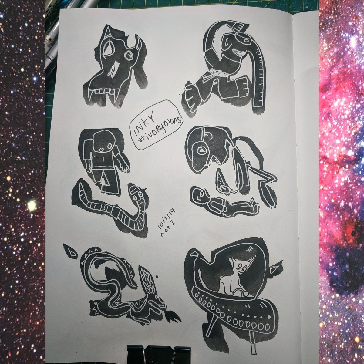 Thanks everyone for a great stream! 💜 Happy #inktober! #ghostie is off to an unlucky start! 😆 Plus #drawlloween and #hamoween prompts! AND special edition INKY #ivorymons! Thank you so much for the subs, lurks and chatting with me on stream! 💜⭐ Next stream Saturday 5pm EST!