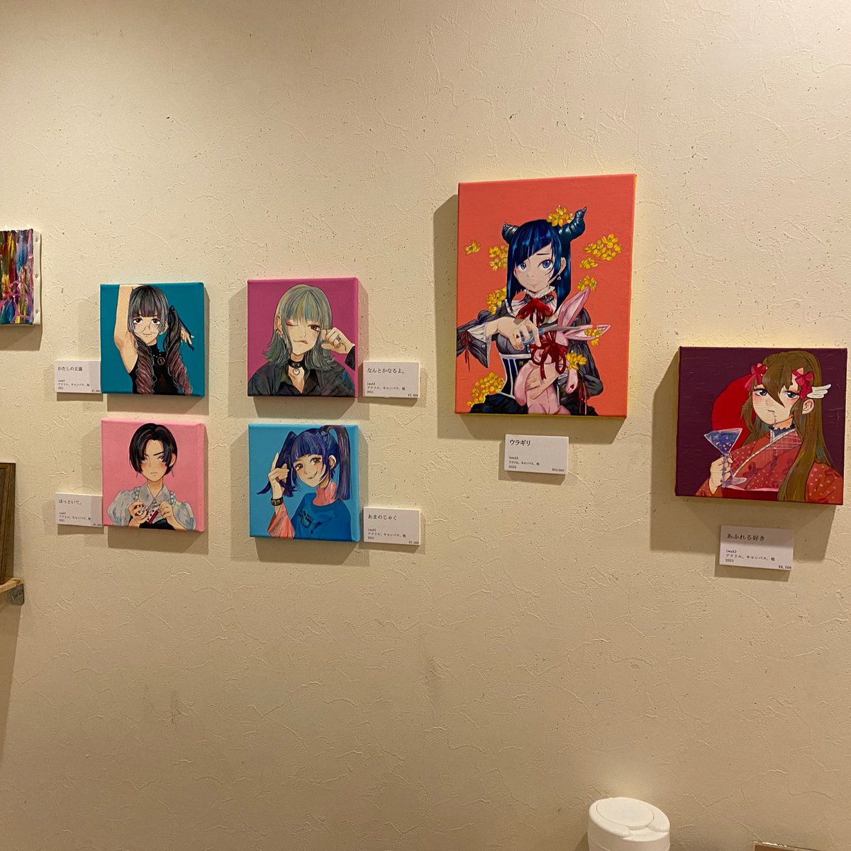 今日から展示はじまりますー!!! めちゃめちゃ賑やかな空間になっていた!!! 既存の絵ちょっと加筆した🌷🌷 絵の具もデジタルも写真も切り絵も刺繍もモリモリ #絵描きさんと繋がりたい #イラスト好きな人と繋がりたい #冬の創作クラスタフォロー祭り #イラスト