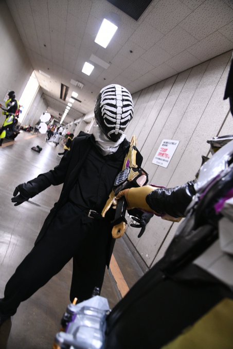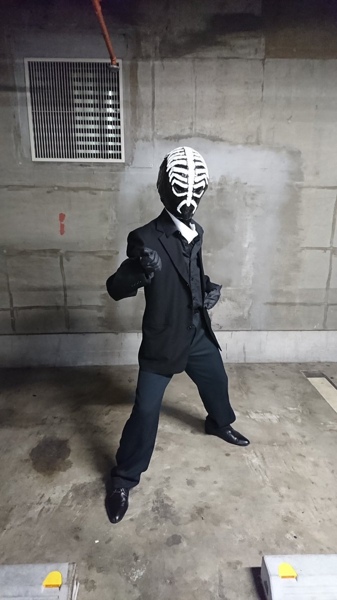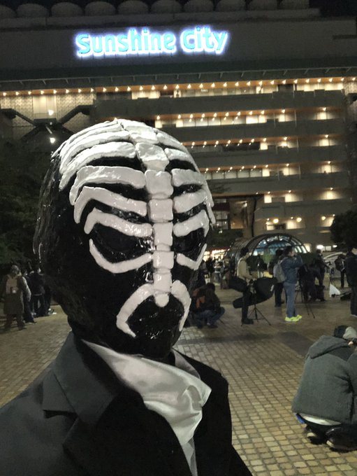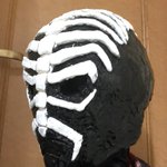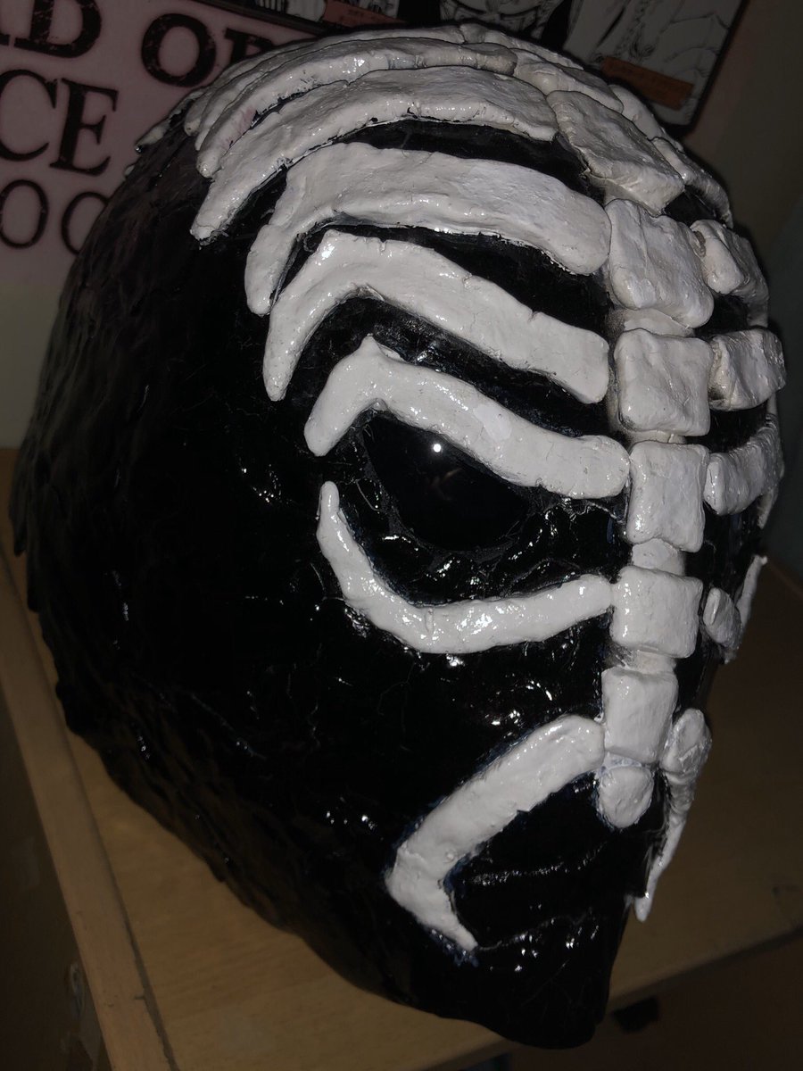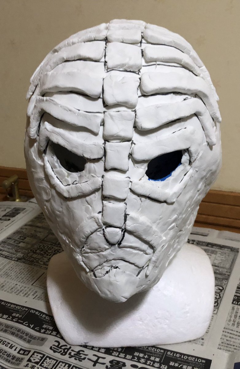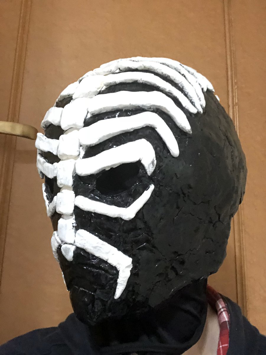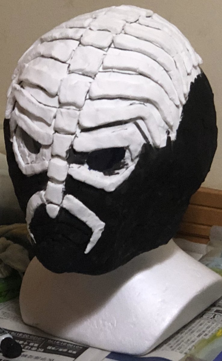 #このタグを見た人はラフ造型とその完成品を見せる 1.EVAボードでベースを作って紙粘土で盛る 2.黒の絵具で塗装 3.ニスを塗って裏にメッシュを貼って一度完成 4.ニスのベトベトが嫌だったからスプレーでリペイント&メッシュからサングラスのレンズに変更(これが今の状態)
