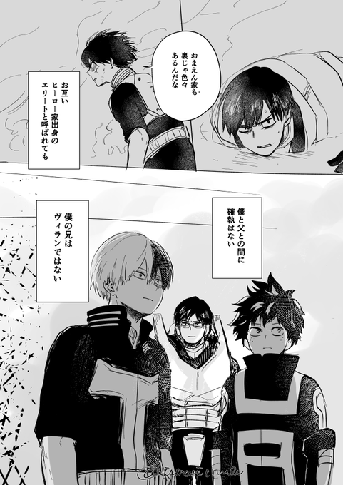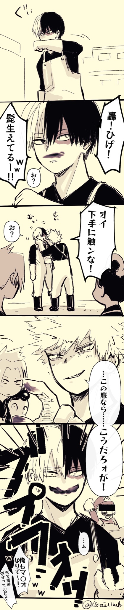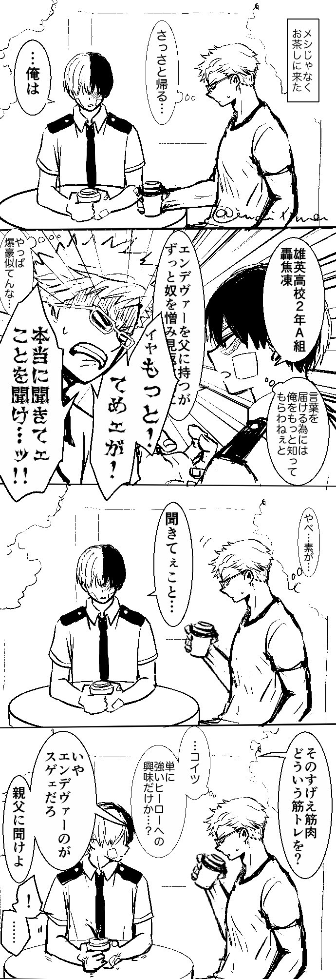 マロ頂いて思い出した大昔の爆轟ネタ落書き 「未来から来たプロヒ💥(26)←学生🍰(16)(←学生💥(17))」という珍味(~🍰を救けに来たプロヒ💥は過去に来た自分の影響を最低限にしたいのになぜか🍰とメシを食いに行くことに??~)の続き