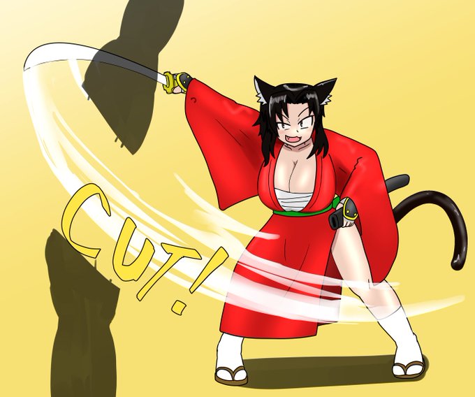佳虫さんの創作キャラの猫人侍のトリスさん描かせていただきました、斬ってるのは多分巻き藁カナニカダ… ちなみにカットとキャットをかけたダジャレということはナイショです (尻尾描き忘れにより差し替え後斬首の刑) twitter.com/keimusi_san/st…